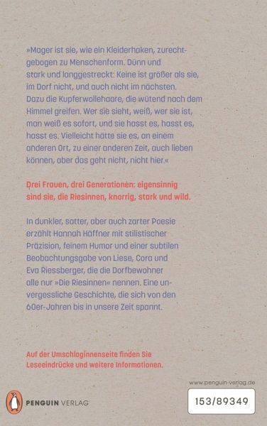 »'Die Riesinnen' saugen einen auf der ersten Seite ein, und am Ende dieses Drei-Generationen-Porträts großer Frauen wird man atemlos ausgespuckt. Wüst, wild, bewegend und voller Poesie.« DORIS KNECHT