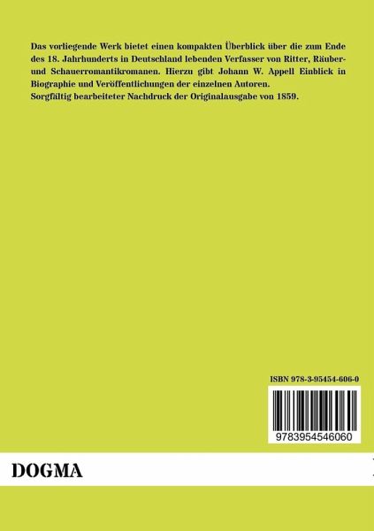 Das vorliegende Werk bietet einen kompakten Überblick über die zum Ende des 18. Jahrhunderts in Deutschland lebenden Verfasser von Ritter, Räuber- und Schauerromantikromanen. Hierzu gibt Johann W. Appell Einblick in Biographie und Veröffentlichungen der einzelnen Autoren.