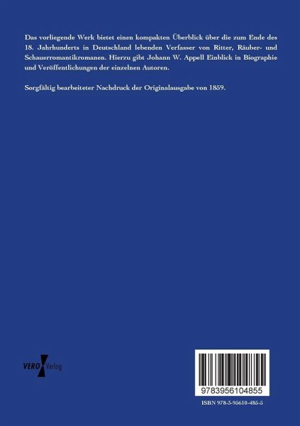 Das vorliegende Werk bietet einen kompakten Überblick über die zum Ende des 18. Jahrhunderts in Deutschland lebenden Verfasser von Ritter, Räuber- und Schauerromantikromanen. Hierzu gibt Johann W. Appell Einblick in Biographie und Veröffentlichungen der einzelnen Autoren.