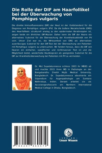 Die direkte Immunfluoreszenz (DIF) der Haut ist der Goldstandard für die Diagnose von Pemphigus vulgaris (PV). Da die äußere Wurzelscheide (ORS) des Haarfollikels strukturell analog zu den epidermalen Keratinozyten ist, zeigen beide ein ähnliches DIF-Muster. Daher kann die DIF der Haare ein alternatives Substrat für die Überwachung der Krankheitsaktivität von PV sein. Unser Ziel war es, die Wirksamkeit von ORS als alternatives zuverlässiges Substrat für den DIF-Test bei der Überwachung von Patienten mit Pemphigus vulgaris zu untersuchen. Wir fanden heraus, dass die DIF von Haaren ein einfacher, spezifischer und nichtinvasiver Test ist und die Möglichkeit bietet, wiederholte Hautbiopsien als geeignetes Substrat für die DIF zur Krankheitsüberwachung bei Patienten mit PV zu vermeiden.