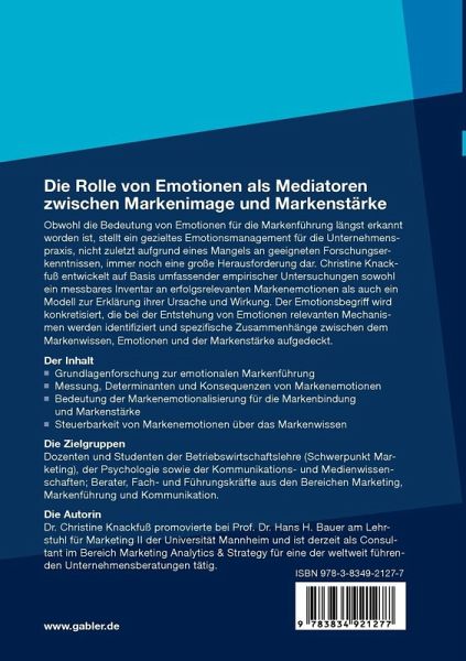 Obwohl die Bedeutung von Emotionen für die Markenführung längst erkannt worden ist, stellt ein gezieltes Emotionsmanagement für die Unternehmenspraxis, nicht zuletzt aufgrund eines Mangels an geeigneten Forschungserkenntnissen, immer noch eine große Herausforderung dar. Christine Knackfuß entwickelt auf Basis umfassender empirischer Untersuchungen sowohl ein messbares Inventar an erfolgsrelevanten Markenemotionen als auch ein Modell zur Erklärung ihrer Ursache und Wirkung. Der Emotionsbegriff wird konkretisiert, die bei der Entstehung von Emotionen relevanten Mechanismen werden identifiziert und spezifische Zusammenhänge zwischen dem Markenwissen, Emotionen und der Markenstärke aufgedeckt.