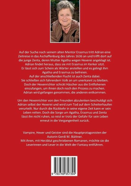 Auf der Suche nach seinem alten Mentor Erasmus tritt Adrian eine Zeitreise in das Aschaffenburg des Jahres 1636 an und trifft dort auf die junge Zenta, deren Mutter Agatha wegen Hexerei angeklagt ist. Adrian findet heraus, dass sie mit Erasmus im Kerker sitzt. Er lässt sich zum Schein als Wärter anstellen und es gelingt ihm, Agatha und Erasmus zu befreien. Auf der anschließenden Flucht ist auch Zenta dabei. Sie schließen sich einer Zigeunerhorde an, um unerkannt zu bleiben. Doch der Hexenrichter schickt Häscher aus, die Entflohenen einzufangen, um ihnen doch noch den Prozess zu machen. Adrian…mehr