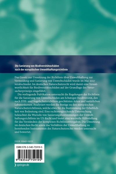 Die vorliegende Publikation untersucht die Regelungen der Richtlinie für die Sanierung von Umweltschäden am Schutzgut Biodiversität, den nach FFH- und Vogelschutzrichtlinie geschützten Arten und natürlichen Lebensräumen. Analysiert werden die Bezüge zu den europäischen Naturschutzrichtlinien, welche etwa für die Bestimmung der Erheblichkeit von Bedeutung sind. Eine rechtsvergleichende Untersuchung beleuchtet die Wurzeln von Sanierungsbestimmungen der Umwelthaftungsrichtlinie im US-Recht und bietet eine wertvolle Hilfestellung für das Verständnis der komplexen Richtlinienvorgaben. Die Umsetzung im deutschen Recht sowie das Verhältnis der Umwelthaftung zu bestehenden Instrumenten des Naturschutzrechts werden untersucht und bewertet.