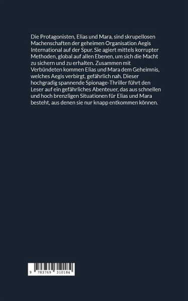Die Protagonisten, Elias und Mara, sind skrupellosen Machenschaften der geheimen Organisation Aegis International auf der Spur. Sie agiert mittels verschiedenster Methoden und Machenschaften, global auf allen Ebenen, um sich die Macht zu sichern und zu erhalten. Zusammen mit Verbündeten kommen Elias und Mara dem Geheimnis, welches Aegis verbirgt, gefährlich nah. Dieser hochgradig spannende Spionage-Thriller führt den Leser auf ein gefährliches Abenteuer, das aus schnellen und hoch brenzligen Situationen für Elias und Mara besteht, aus denen sie nur knapp entkommen können.