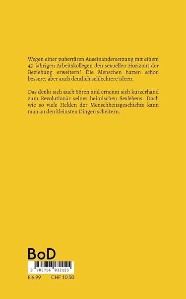 Wegen einer pubertären Auseinandersetzung mit einem 45-jährigen Arbeitskollegen den sexuellen Horizont der Beziehung erweitern? Die Menschen hatten schon bessere, aber auch deutlich schlechtere Ideen.Das denkt sich auch Sören und ernennt sich kurzerhand zum Revolutionär seines heimischen Sexlebens. Doch wie so viele Helden der Menschheitsgeschichte kann man an den kleinsten Dingen scheitern.