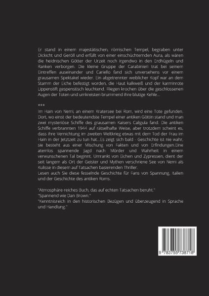 Im Hain von Nemi, an einem Kratersee in der Nähe von Rom, wird eine tote Frau gefunden. Dort, wo einst der wichtigste Tempel einer antiken Göttin stand und wo zwei geheimnisvolle Schiffe des grausamen Kaisers Caligula gefunden wurden. Die antiken Schiffe sind 1944 auf mysteriöse Weise verbrannt, und doch scheint ihre Zerstörung im Zweiten Weltkrieg etwas mit dem Tod der Frau im Hain in der Gegenwart zu tun zu haben...Bald wird klar - Geschichte ist nie wahr, sie besteht aus einer Mischung aus Fakten und aus Erfindungen. Eine atemlos spannende Jagd nach Mörder und Wahrheit in einem verwunschenen Tal beginnt. Umgeben von Eichen und Zypressen dient der Nemi-See, der lange als Ort der Geister und Mythen galt, als Kulisse für diesen faktenbasierten Thriller.Lesen auch Sie diese fesselnde Geschichte für Fans von Spannung, Italien und der Geschichte des alten Roms."Atmosphärisch dichtes Buch, das auf wahren Tatsachen beruht.""Spannend wie Dan Brown.""Kenntnisreich in den historischen Bezügen und fesselnd in Sprache und Handlung."