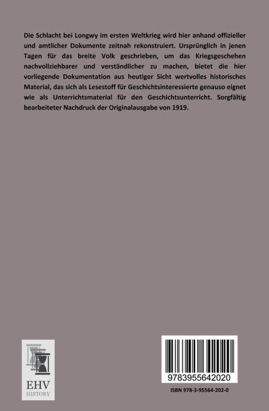 Die Schlacht bei Longwy im ersten Weltkrieg wird hier anhand offizieller und amtlicher Dokumente zeitnah rekonstruiert. Ursprünglich in jenen Tagen für das breite Volk geschrieben, um das Kriegsgeschehen nachvollziehbarer und verständlicher zu machen, bietet die hier vorliegende Dokumentation aus heutiger Sicht wertvolles historisches Material, das sich als Lesestoff für Geschichtsinteressierte genauso eignet wie als Unterrichtsmaterial für den Geschichtsunterricht. Sorgfältig bearbeiteter Nachdruck der Originalausgabe von 1919.