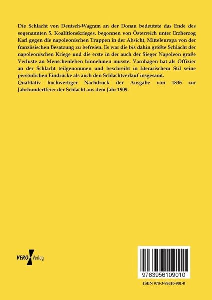Die Schlacht von Deutsch-Wagram an der Donau bedeutete das Ende des sogenannten 5. Koalitionskrieges, begonnen von Österreich unter Erzherzog Karl gegen die napoleonischen Truppen in der Absicht, Mitteleuropa von der französischen Besatzung zu befreien. Es war die bis dahin größte Schlacht der napoleonischen Kriege und die erste in der auch der Sieger Napoleon große Verluste an Menschenleben hinnehmen musste. Varnhagen hat als Offizier an der Schlacht teilgenommen und beschreibt in literarischem Stil seine persönlichen Eindrücke als auch den Schlachtverlauf insgesamt.