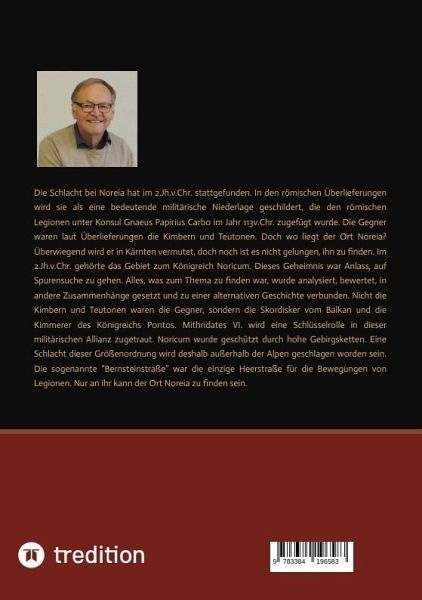 Die Schlacht von Noreia fand 113 v.Chr. statt. Sie wurde ausgefochten zwischen römischen Legionen und einem Heer der Kimbern und Teutonen. So die Überlieferung. Wo der Ort Noreia liegt, konnte bis heute nicht geklärt werden. Viele vermuten ihn in Kärnten, das im 2.Jh.v.Chr. zum Königreich Noricum gehörte. Das Geheimnis um diese Schlacht ist verlockend genug, sich immer wieder damit zu beschäftigen. Das Ergebnis ist eine alternative Darstellung dieses Ereignisses. Die tatsächlichen Gegner Roms waren die auf dem Balkan entlang der Save und Morava lebenden Skordisker und ein Söldnerheer des pontischen Königs Mithridates VI. Die römischen Legionen erlitten eine schwere Niederlage. Damit wurde den Eroberungsplänen Einhalt geboten und der Traum Roms vom Landweg nach Byzantium zerstreut.