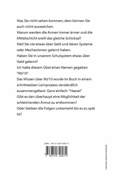 Die Armut schleicht sich langsam aber stetig in die Mittelschicht ein und frisst sich durch die Geldbeutel. Wie Sie das verhindern? Garnicht! Was können SIE ändern? Ihr Verhalten! Wie das gehen soll? Wenn Sie das Buch gelesen haben, werden Sie es verstehen.