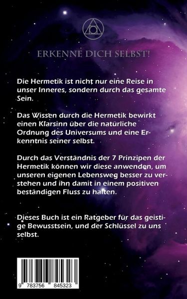 Die Hermetik ist nicht nur eine Reise in unser Inneres, sondern durch das gesamte Sein.Das Wissen durch die Hermetik bewirkt einen Klarsinn über die natürliche Ordnung des Universums und eine Erkenntnis seiner selbst. Durch das Verständnis der 7 Prinzipen der Hermetik können wir diese anwenden, um unseren eigenen Lebensweg besser zu verstehen und ihn damit in einem positiven beständigen Fluss zu halten.Dieses Buch ist ein Ratgeber für das geistige Bewusstsein, und der Schlüssel zu uns selbst.