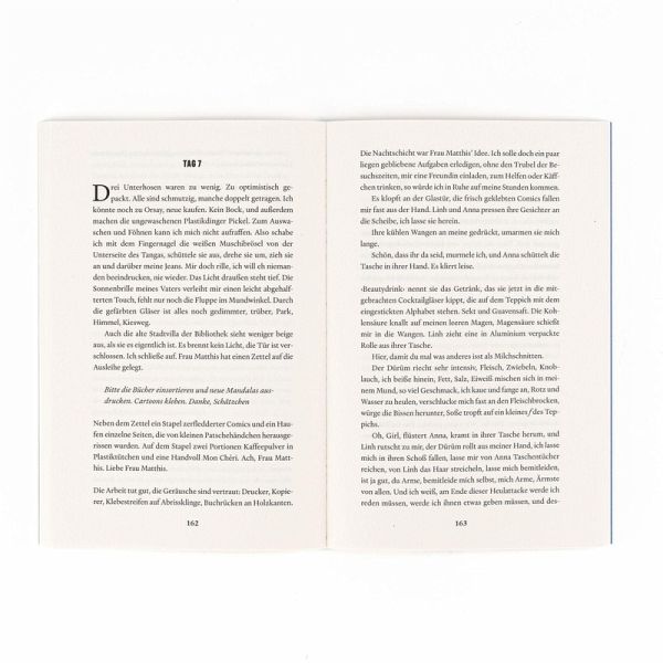 «[eine] Geschichte über eine junge Frau aus Ostdeutschland mit einer toxisch-gewaltvollen Beziehung. Jedes einzelne dieser drei Themen ist mittlerweile gut bearbeitet - aber kaum jemals so brutal anmutig, wie es sich Thomas vornimmt. Mit diesem Roman, der so mühelos die Erzählregister zwischen einer panisch atemlosen Sprache und einer ausgeruhten Sanftheit wechselt.» Berit Dießelkämper Die Zeit 20240919