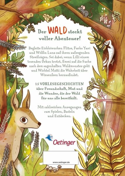 Der Wald steckt voller Abenteuer! In diesem großen Vorlesebuch für Kinder ab 3 Jahren versammeln sich 15 warmherzige Geschichten über den Wald und seine Bewohner. Hier macht sich die kleine Emmi auf die Suche nach dem sagenumwobenen Waldmonster, der Wichtel Matti entdeckt die Wahrheit über die Wiesenfeen und die kleine Lilli trotzt einem tosenden Orkan.