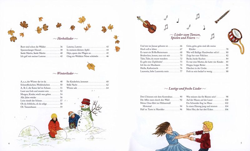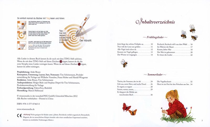 Dieser wunderschöne, oppulent ausgestattete Liederschatz versammelt rund 120 der bekanntesten und beliebtesten Kinderlieder zum gemeinsamen Singen und Musizieren, Tanzen und Spielen für Groß und Klein: Lieder im Jahreslauf, Lieder von Tieren, vom Reisen, über Märchen, Gute-Nacht-Lieder und viele mehr. Alle Lieder sind mit einfachen Notensätzen und Gitarrenakkorden ausgestattet. Maja Wagner hat liebevoll die Stimmung der Lieder eingefangen und sie in fantasievolle, zum Anschauen und Träumen einladende Bilder übersetzt. Mit Klassikern wie Die Vogelhochzeit , Fuchs, du hast die Gans gestohlen oder ABC, die Katze lief im Schnee .TING-fähig: Besitzer des TING-Stiftes können sich alle Lieder mit Gesang anhören oder sie unterstützt von Instrumentalbegleitung singen.