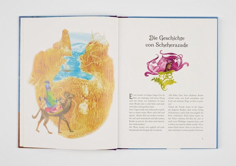Die kluge Scheherazade erzählt ihrem König jede Nacht ein neues Märchen - von Aladin und der Wunderlampe, von Ali Baba und den vierzig Räubern, vom fliegenden Zauberpferd oder dem Kaufmann von Bagdad ...