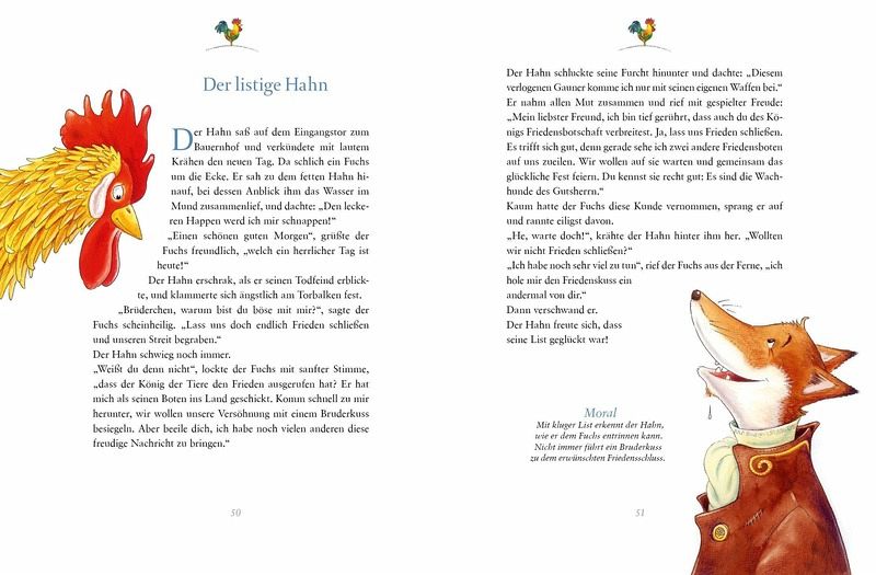 Oder vom "listigen Hahn", der klug genug war, um dem Fuchs zu entrinnen. 🐓 🦊