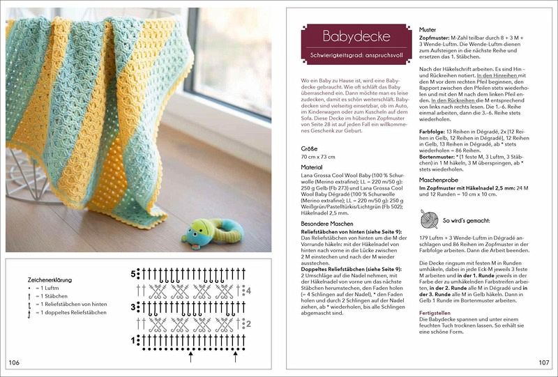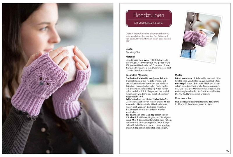 Diese 30 Zopfmuster sehen interessant aus und sind mit Stäbchen und Reliefstäbchen leicht gemacht. Detaillierte Anleitungen und Häkelschriften erklären, wies geht. Und wie besonders schön Modelle mit Häkelzöpfen aussehen, zeigen 16 Projekte, zum Beispiel eine Kuscheldecke für die Kleinen, Yogasocken mit dem passenden Kissen, Handytäschchen und Socken im Trachtenlook, eine Fellmütze mit Plüschbommel sowie Schal und Seelenwärmer für kalte Tage.