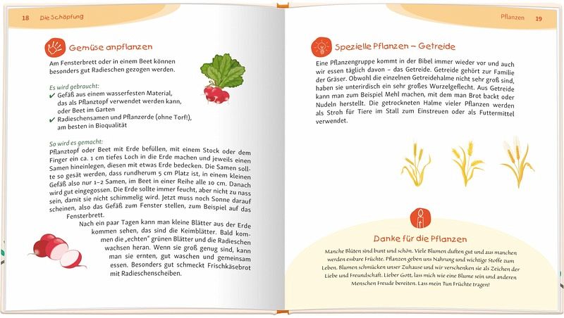 Mit liebevollen Geschichten zum Vorlesen, spannendem Hintergrundwissen und ausgewählten Bibelstellen werden die Wunder der Schöpfung in all ihren Facetten greifbar gemacht. Traumreisen, Kreativideen, Lieder und Gesprächsimpulse binden die Kinder dabei aktiv ein. So erfahren Kinder auf spielerische Weise, wie wertvoll unsere Welt ist und warum es so wichtig ist, sie zu schützen. Sie lernen, dass niemand zu klein ist, um einen Beitrag zu leisten - alle können mithelfen, die Schöpfung zu bewahren.