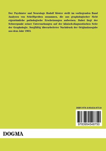 Der Psychiater und Neurologe Rudolf Köster stellt im vorliegenden Band Analysen von Schriftproben zusammen, die aus graphologischer Sicht eigentümliche pathologische Erscheinungen aufweisen. Dabei liegt der Schwerpunkt seiner Untersuchungen auf der klinisch-diagnostischen Seite der Graphologie. Sorgfältig überarbeiteter Nachdruck der Originalausgabe aus dem Jahr 1903.