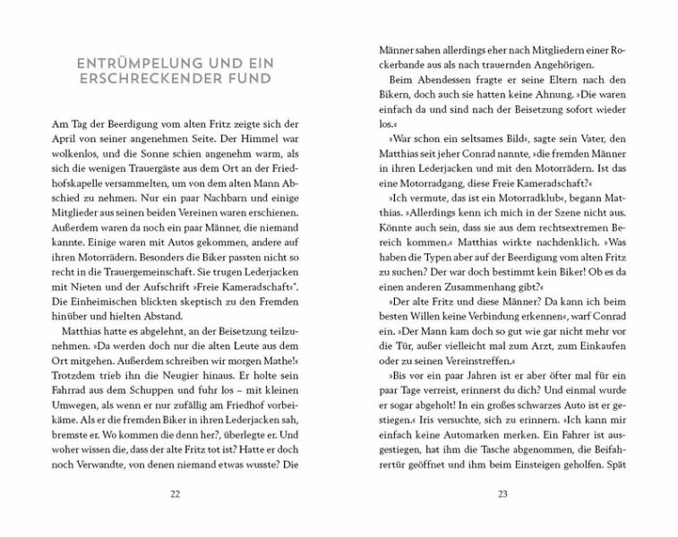Sein Leben lang wohnte der 16-jährige Matthias neben Friedrich Schmidt. Er kannte den alten Mann gut - dachte er zumindest. Doch nach Schmidts Tod findet er heraus, dass der früher bei der SS war und bis zuletzt in Verbindung mit rechten Gruppierungen stand. Niemand in der Kleinstadt hatte davon gewusst.