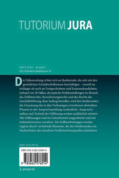 Die Fallsammlung richtet sich an Studierende, die sich mit den gesetzlichen Schuldverhältnissen beschäftigen - sowohl an Anfänger als auch an Fortgeschrittene und Examenskandidaten. Anhand von 30 Fällen, die typische Problemstellungen im Bereich des Deliktsrechts, Bereicherungsrechts und des Rechts der Geschäftsführung ohne Auftrag betreffen, wird den Studierenden die Umsetzung des in den Vorlesungen erworbenen abstrakten Wissens in der Anspruchsprüfung verdeutlicht. Anspruchsaufbau und Technik der Falllösung werden ausführlich erörtert. Alle Falllösungen sind im Gutachtenstil ausgearbeitet und mit Aufbauhinweisen versehen. Die Fallbearbeitungen werden ergänzt durch vertiefende Hinweise, die den Studierenden ein Nacharbeiten der einzelnen Problemschwerpunkte erleichtern.