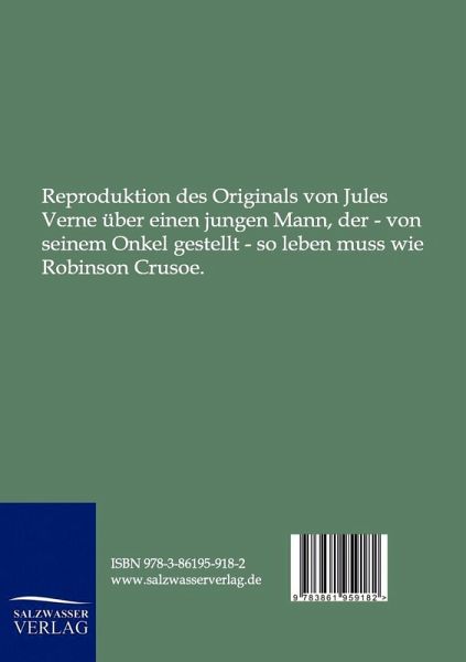 Reproduktion des Originals von Jules Verne über einen jungen Mann, der - von seinem Onkel gestellt - so leben muss wie Robinson Crusoe.