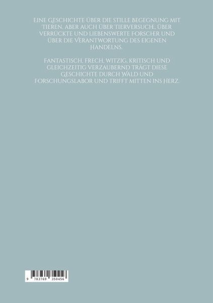 Eine Geschichte über die stille Begegnung mit Tieren, aber auch über Tierversuche, über verrückte und liebenswerte Forscher und über die Verantwortung des eigenen Handelns. Fantastisch, frech, witzig, kritisch und gleichzeitig verzaubernd trägt diese Geschichte durch Wald und Forschungslabor und trifft mitten ins Herz.