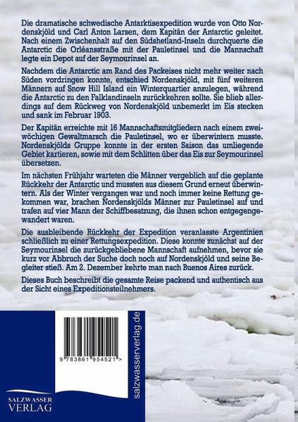 Die dramatische Schwedische Antarktisexpedition wurde von Otto Nordenskjöld und Carl Anton Larsen, dem Kapitän der Antarctic geleitet. Nach einem Zwischenhalt auf den Südshetland-Inseln durchquerte die Antarctic die Orléansstraße mit der Pauletinsel und die Mannschaft legte ein Depot auf der Seymourinsel an. Nachdem die Antarctic am Rand des Packeises nicht mehr weiter nach Süden vordringen konnte, entschied Nordenskjöld, mit fünf weiteren Männern auf Snow Hill Island ein Winterquartier anzulegen, während die Antarctic zu den Falklandinseln zurückkehren sollte. Sie blieb allerdings auf dem Rückweg von Nordenskjöld unbemerkt im Eis stecken und sank im Februar 1903. Der Kapitän erreichte mit 16 Mannschaftsmitgliedern nach einem zweiwöchigen Gewaltmarsch die Pauletinsel, wo er überwintern musste. Nordenskjölds Gruppe konnte in der ersten Saison das umliegende Gebiet kartieren, sowie mit dem Schlitten über das Eis zur Seymourinsel übersetzen. Im nächsten Frühjahr warteten die Männer vergeblich auf die geplante Rückkehr der Antarctic und mussten aus diesem Grund erneut überwintern. Als der Winter vergangen war und noch immer keine Rettung gekommen war, brachen Nordenskjölds Männer zur Pauletinsel auf und trafen auf vier Mann der Schiffbesatzung, die ihnen schon entgegengewandert waren. Die ausbleibende Rückkehr der Expedition veranlasste Argentinien schließlich zu einer Rettungsexpedition. Diese konnte zunächst auf der Seymourinsel die zurückgebliebene Mannschaft aufnehmen, bevor er kurz vor Abbruch seiner Suche doch noch auf Nordenskjöld und seine Begleiter stieß. Am 2. Dezember kehrte man nach Buenos Aires zurück. Dieses Buch beschreibt die gesamte Reise packend und authentisch aus der Sicht eines Expeditionsteilnehmers.