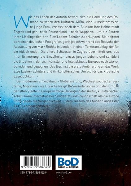 Wie das Leben der Autorin bewegt sich die Handlung des Romans zwischen den Kulturen. MIRA, eine kunstinteressierte junge Frau, verlässt nach dem Studium ihre Heimatstadt Zagreb und geht nach Deutschland - nach Wuppertal, um die Spurenihrer Lieblingsdichterin Else Lasker-Schüler zu erkunden. Sie heiratet dort einen deutschen Fotografen, gerät jedoch während des Besuchs der Ausstellung von Mark Rothko in London, in einen Terroranschlag, der für sie tödlich endet. Die ältere Schwester in Zagreb übermittelt uns, aus ihrer Erinnerung, die Einzelheiten dieses jungen Lebens und schildert die Situation in der sich Künstler und Intellektuelle Europas nach wie vor befinden und begegnen. Das Buch ist die erste Annäherung an das Werk Else Lasker-Schülers und ihr künstlerisches Umfeld für das kroatischeLesepublikum.Der modernen Entwicklung - Globalisierung, Wechsel politischer Systeme, Migration - als Ursache für große Veränderungen und den Umbau der alten Städte in Europa wird die Bedeutung der Kultur, künstlerischer Arbeit sowie internationaler Solidarität und Freundschaft als die einzige Form gegen die Vergänglichkeit - "dem Rieseln des feinen Sandes der Zeit" - entgegengehalten.
