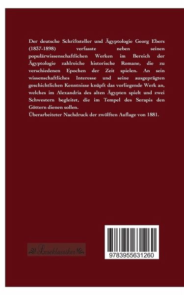 Der deutsche Schriftsteller und Ägyptologie Georg Ebers (1837-1898) verfasste neben seinen populärwissenschaftlichen Werken im Bereich der Ägyptologie zahlreiche historische Romane, die zu verschiedenen Epochen der Zeit spielen. An sein wissenschaftliches Interesse und seine ausgeprägten geschichtlichen Kenntnisse knüpft das vorliegende Werk an, welches im Alexandria des alten Ägypten spielt und zwei Schwestern begleitet, die im Tempel des Serapis den Göttern dienen sollen.