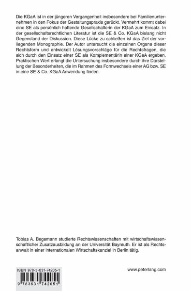 Die KGaA ist in der jüngeren Vergangenheit insbesondere bei Familienunternehmen in den Fokus der Gestaltungspraxis gerückt. Vermehrt kommt dabei eine SE als persönlich haftende Gesellschafterin der KGaA zum Einsatz. In der gesellschaftsrechtlichen Literatur ist die SE & Co. KGaA bislang nicht Gegenstand der Diskussion. Diese Lücke zu schließen ist das Ziel der vorliegenden Monographie. Der Autor untersucht die einzelnen Organe dieser Rechtsform und entwickelt Lösungsvorschläge für die Rechtsfragen, die sich durch den Einsatz einer SE als Komplementärin einer KGaA ergeben. Praktischen Wert erlangt die Untersuchung insbesondere durch ihre Darstellung der Besonderheiten, die im Rahmen des Formwechsels einer AG bzw. SE in eine SE & Co. KGaA Anwendung finden.