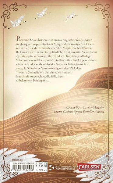 Prinzessin Shiori hat ihre verbotenen magischen Kräfte bisher sorgfältig verborgen. Doch am Morgen ihrer arrangierten Hochzeit verliert sie die Kontrolle über ihre Magie. Ihre Stiefmutter Raikama wittert in ihr eine gefährliche Konkurrentin. Sie verbannt die Prinzessin, verwandelt ihre Brüder in Kraniche und belegt Shiori mit einem Fluch: Sobald ein Wort über ihre Lippen kommt, wird ein Bruder sterben. Auf der Suche nach den Kranichen entdeckt Shiori eine Verschwörung mit dem Ziel, den Thron zu übernehmen. Um das zu verhindern, braucht sie ausgerechnet die Hilfe ihres unbekannten Bräutigams - und sie ist auf alles gefasst, aber nicht darauf, sich zu verlieben ...