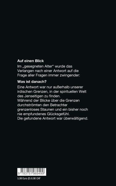 Im gesegneten Alter verlangte das ganz große Fragezeichen immer zwingender nach einer Antwort: Was ist danach?Dem Autor war klar, eine reelle Antwort würde er nicht hier auf Erden erhalten. Er musste das schier Unmögliche versuchen, über die Grenzen des Diesseits hinaus, in die spirituelle Welt des Jenseits zu blicken. Das, was seinen Blicken begegnete, löste grenzenloses Staunen, ehrfurchtsvolle Bewunderung und ein unbeschreibliches, bisher nie empfundenes Glücksgefühl aus.Die wunderbare Antwort, die er erhielt, trug das Wahrheitssiegel der Spiritualität des Jenseits.