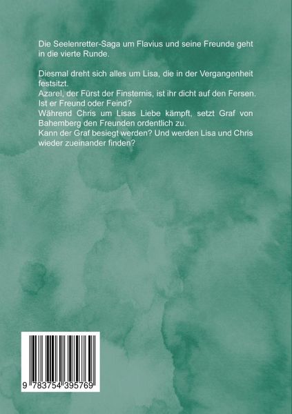 Die Seelenretter-Saga um Flavius und seine Freunde geht in die vierte Runde.Diesmal dreht sich alles um Lisa, die in der Vergangenheit festsitzt.Azarel, der Fürst der Finsternis, ist ihr dicht auf den Fersen. Ist er Freund oder Feind?Während Chris um Lisas Liebe kämpft, setzt Graf von Bahemberg den Freunden ordentlich zu.Kann der Graf besiegt werden? Und werden Lisa und Chris wieder zueinander finden?