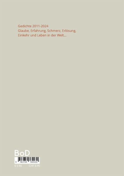 Gedichte 2011-2024 Glaube, Erfahrung, Schmerz, Erlösung, Einkehr und Leben in der Welt...