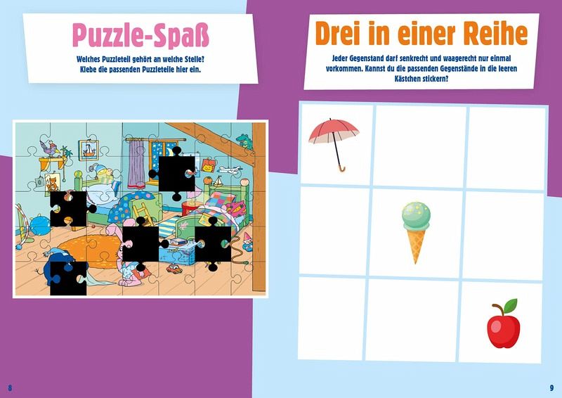 Rätseln, Stickern und Basteln in einem BuchSpielerisch Zahlen und Buchstaben lernenEinfache Bastelanleitungen für eine Elefantenmaske, eine Elefantenlaterne, ein Partyhütchen und mehr