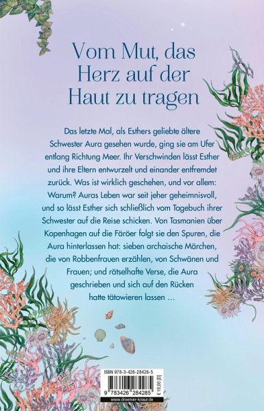 Das letzte Mal, als Esther Wildings geliebte ältere Schwester Aura gesehen wurde, ging sie am Ufer entlang Richtung Meer. Ihr Verschwinden lässt Esther und ihre Eltern entwurzelt und einander entfremdet zurück. Was ist wirklich geschehen, und vor allem: warum? Auras Leben war schon vor ihrem Verschwinden geheimnisvoll, und so lässt Esther sich schließlich vom Tagebuch ihrer Schwester auf die Reise schicken. Von Tasmanien über Kopenhagen auf die Färöer Inseln folgt sie den Spuren, die Aura hinterlassen hat: sieben archaische Märchen, die von Frauen und Verwandlungen erzählen; dazu geheimnisvolle Verse, die Aura geschrieben und sich auf den Rücken hatte tätowierenlassen. Esther findet die Wahrheiten, die sie sucht, und mehr als das: die grenzenlose Liebe zwischen Schwestern und die Kraft, Veränderung und Heilung zuzulassen, indem sie die ganze Fülle von Trauer und Freude spürt.