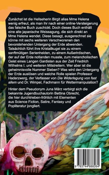 Irrtümlicherweise ersteigert die Hellseherin Birgit alias Mme. Helena ein falsches Buch. Zu ihrem Erstaunen entdeckt sie darin eine alte japanische Weissagung, die sich direkt an sie wendet: Ausgerechnet sie kann mit sechs weiteren Verschworenen den bevorstehenden Untergang der Erde abwenden. Tatsächlich führt ihre Kristallkugel sie zu einem sanftmütigen Serienhelden, zu einem Außerirdischen, der auf der Erde notlanden musste, zum melancholischen Geist eines Langen Gardisten aus der Zeit Friedrich Wilhelm I. und weiteren Mitstreitern. Wer aber ist die geheimnisvolle Nummer Sieben, von der die Weissagung sagt, sie sei schön und leicht zu durchschauen? Was wird den Untergang der Erde auslösen und welche Rolle spielen Professor Haderzwerg, der Verfasser von Die Widerlegung von fast allem und sein Kollege Wimpel, Fachmann für Wettermanipulation?