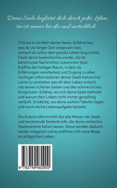 Lerne deine Seele wieder neu kennen.Möchtest du dich gerne vollkommen ganz und sicher fühlen?Ist es vielleicht so, dass du dich oft alleine und unverstanden fühlst?Nimmst du dich in vielen Situationen als "anders" wahr?Fehlt manchmal ein Zugehörigkeitsgefühl zu deiner Herkunftsfamilie?Sehnst du dich nach etwas, was du nicht wirklich benennen kannst?Findest du die Anerkennung deiner persönlichen Individualität in deinem Alltag?Wenn du Antworten auf diese Fragen suchst, dann beginne zu lesen, damit deine Seele sich wieder erinnert.Wenn du dich wieder mehr verstehen möchtest, dann beginne zu lesen, damit deine Seele Erfahrungen integrieren kann.Wenn du dich neu finden möchtest, dann beginne zu lesen, damit deine Seele heilen kann.Wenn du die Verbundenheit der anderen Menschen wieder fühlen möchtest, dann beginne zu lesen, damit auch du wieder verbunden bist mit deiner Seele.Wenn du dich weiterentwickeln möchtest, dann beginne zu lesen, damit du keine Umwege mehr gehen musst, um deiner Seele zu begegnen.Wenn du dich wieder lieben möchtest, dann beginne zu lesen, damit die Liebe wieder in deine Seele einziehen kann.Wenn du einzigartige Erfahrungen machen möchtest, dann beginne zu lesen.
