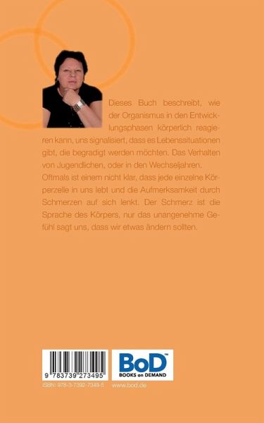 Dieses Buch beschreibt, wie der Organismus in den Entwicklungsphasen körperlich reagieren kann, uns signalisiert, dass es Lebenssituationen gibt, die begradigt werden möchten. Das Verhalten von Jugendlichen, oder in den Wechseljahren.Oftmals ist einem nicht klar, dass jede einzelne Körperzelle in uns lebt und die Aufmerksamkeit durch Schmerzen auf sich lenkt. Der Schmerz ist die Sprache des Körpers, nur das unangenehme Gefühl sagt uns, dass wir etwas ändern sollten.