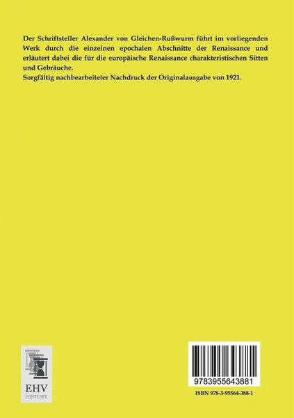 Der Schriftsteller Alexander von Gleichen-Rußwurm führt im vorliegenden Werk durch die einzelnen epochalen Abschnitte der Renaissance und erläutert dabei die für die europäische Renaissance charakteristischen Sitten und Gebräuche.