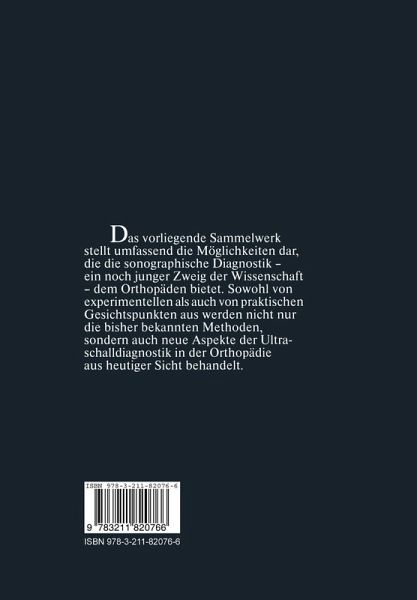 Das vorliegende Sammelwerk stellt umfassend die Möglichkeit dar, die die sonographische Diagnostik - ein noch junger Zweig der Wissenschaft - dem Orthopäden bietet. Sowohl von experimentellen als auch von praktischen Gesichtspunkten aus werden nicht nur die bisher bekannten Methoden, sondern auch neue Aspekte der Ultraschalldiagnostik in der Orthopädie aus heutiger Sicht behandelt.