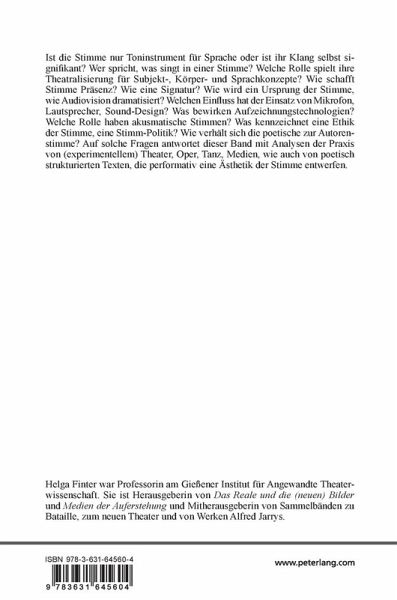 Ist die Stimme nur Toninstrument für Sprache oder ist ihr Klang selbst signifikant? Wer spricht, was singt in einer Stimme? Welche Rolle spielt ihre Theatralisierung für Subjekt-, Körper- und Sprachkonzepte? Wie schafft Stimme Präsenz? Wie eine Signatur? Wie wird ein Ursprung der Stimme, wie Audiovision dramatisiert? Welchen Einfluss hat der Einsatz von Mikrofon, Lautsprecher, Sound-Design? Was bewirken Aufzeichnungstechnologien? Welche Rolle haben akusmatische Stimmen? Was kennzeichnet eine Ethik der Stimme, eine Stimm-Politik? Wie verhält sich die poetische zur Autorenstimme? Auf solche Fragen antwortet dieser Band mit Analysen der Praxis von (experimentellem) Theater, Oper, Tanz, Medien, wie auch von poetisch strukturierten Texten, die performativ eine Ästhetik der Stimme entwerfen.