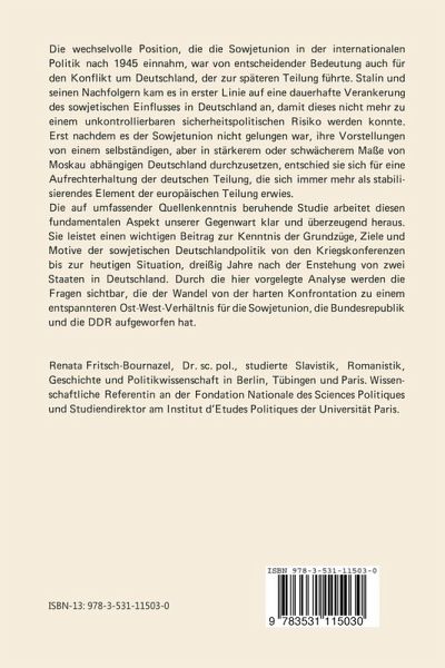 In ihrem Buch "Rapallo: naissance d'un my the" (Paris 1974, dtsche Ausg. 1976) hat sich Renata Fritsch-Bournazel schon einmal mit einem wichtigen Abschnitt der europaischen Geschichte beschaftigt: den zwanziger J ahren. Bereits dort hat sie unter Beweis gestellt, dag sie aile Voraussetzungen flir die adaquate Bearbeitung dieser schwierigen Materie besitzt: einmal die Viersprachigkeit, die es ihr erlaubt, russische Quellen ebenso gut zu berlicksichtigen wie deutsche, franzasische und englische; ferner die Genauigkeit der Analyse und die Ausgewogenheit, mit der sie allen Standpunkten sachlich gerecht wird; schlieglich die Fahigkeit, nicht nur Fakten darzustellen, sondern auch die Vorstellungen herauszuarbeiten, welche Politiker und affentliche Meinung von den Fakten haben, da letztere flir die Gestaltung der Zukunft mindestens ebenso wichtig sind wie die Fakten selbst. In dem neuen Buch geht es urn eine jlingere geschichtliche Periode: die ,zweite Nachkriegszeit'. 1m Mittelpunkt der Untersuchung stehen nun statt Frankreich - als Mit- oder Gegenspieler der Sowjetunion - zwei deutsche Staaten. Es gibt, obwohl man dies in der Bundesrepublik zwanzig Jahre lang nicht zur Kenntnis nehmen wollte, seit 1949 zwei Staaten in Deutschland. Dies ist nicht die einzige nlichterne Feststellung in diesem Buch, die in der Bundesrepublik auch heute noch manchen liberraschen wird, allerdings weniger, als es noch vor ein paar J ahren der Fall gewesen ist.