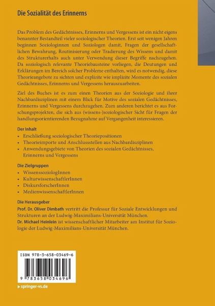 Ziel des Buches ist es zum einen Theorien aus der Soziologie und ihrer Nachbardisziplinen mit einem Blick für Motive des sozialen Gedächtnisses, Erinnerns und Vergessens durchzugehen. Zum anderen berichtet es aus Forschungsprojekten, die sich aus (wissens-)soziologischer Sicht für Fragen der handlungsorientierenden Bezugnahme auf Vergangenheit interessieren.