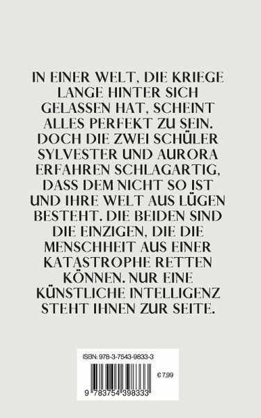 In einer Welt, die Kriege lange hinter sich gelassen hat, scheint alles perfekt zu sein. Doch die zwei Schüler Sylvester und Aurora erfahren schlagartig, dass dem nicht so ist und ihre Welt aus Lügen besteht. Die beiden sind die Einzigen, die die Menschheit aus einer Katastrophe retten können. Nur eine Künstliche Intelligenz steht ihnen zur Seite.