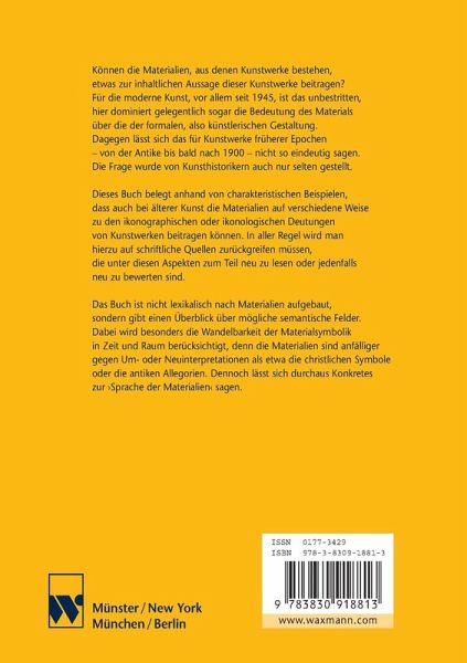Können die Materialien, aus denen Kunstwerke bestehen, etwas zur inhaltlichen Aussage der Kunstwerke beitragen? Für die moderne Kunst, vor allem seit 1945, ist das unbestritten; hier dominiert gelegentlich sogar die Bedeutung des Materials über die der formalen Gestaltung. Für die ältere Kunst - von der Antike bis bald nach 1900 - lässt sich das nicht so eindeutig sagen, - die Frage wurde von Kunsthistorikern auch nur selten gestellt. Dieses Buch belegt anhand von charakteristischen Beispielen, dass auch bei älterer Kunst die verwendeten Materialien auf verschiedene Weise zu den ikonographischen oder ikonologischen Deutungen von Kunstwerken beitragen können. In aller Regel wird man hierzu auf schriftliche Quellen zurückgreifen müssen, die unter diesen Aspekten zum Teil neu zu lesen oder jedenfalls neu zu bewerten sind. Das Buch ist nicht lexikalisch nach Materialien aufgebaut, sondern gibt einen Überblick über mögliche semantische Felder. Dabei wird besonders die Wandelbarkeit der Materialsymbolik in Zeit und Raum berücksichtigt; denn die Materialien sind anfälliger gegen Um- oder Neuinterpretationen als etwa die christlichen Symbole oder die antiken Allegorien. Dennoch lässt sich durchaus Konkretes zur "Sprache der Materialien" sagen.