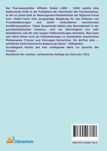 Der Psychoanalytiker Wilhelm Stekel (1868 - 1940) spielte eine bedeutende Rolle in der Frühphase der Geschichte der Psychoanalyse, in der es schon bald zu Meinungsverschiedenheiten mit Sigmund Freud kam. Stekel hatte eine ausgeprägte Begabung für das Erfassen von Traumbedeutungen und damit verbundenen neurotischen Konfliktdynamiken. "Seine Hauptwerke bilden eine Besonderheit in der psychoanalytischen Literatur, weil sie überwiegend aus sehr detaillierten und oft sehr langen Falldarstellungen bestehen. Man kann sein Werk daher auch als Fallsammlungen zu bestimmten psychischen Phänomenen (Traum) und Störungen betrachten. Sie dürften eine ... erhebliche kulturhistorische Bedeutung haben." (Wikipedia) Grundlegend hierfür das hier vorliegende Werk zur Sprache des Traums. Nachdruck der zweiten, verbesserten Auflage aus dem Jahr 1922.