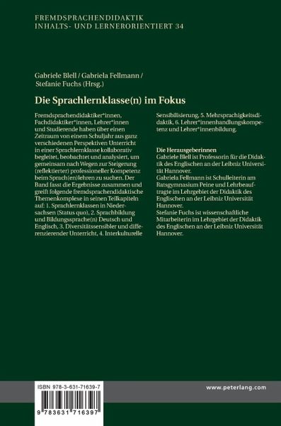Fremdsprachendidaktiker_innen, Fachdidaktiker_innen, Lehrer_innen und Studierende haben über einen Zeitraum von einem Schuljahr aus ganz verschiedenen Perspektiven Unterricht in einer Sprachlernklasse kollaborativ begleitet, beobachtet und analysiert, um gemeinsam nach Wegen zur Steigerung (reflektierter) professioneller Kompetenz beim Sprach(en)lehren zu suchen. Der Band fasst die Ergebnisse zusammen und greift folgende fremdsprachendidaktische Themenkomplexe in seinen Teilkapiteln auf: 1. Sprachlernklassen in Niedersachsen (Status quo), 2. Sprachbildung und Bildungssprache(n) Deutsch und Englisch, 3. Diversitätssensibler und differenzierender Unterricht, 4. Interkulturelle Sensibilisierung, 5. Mehrsprachigkeitsdidaktik, 6. Lehrer_innenhandlungskompetenz und Lehrer_innenbildung.