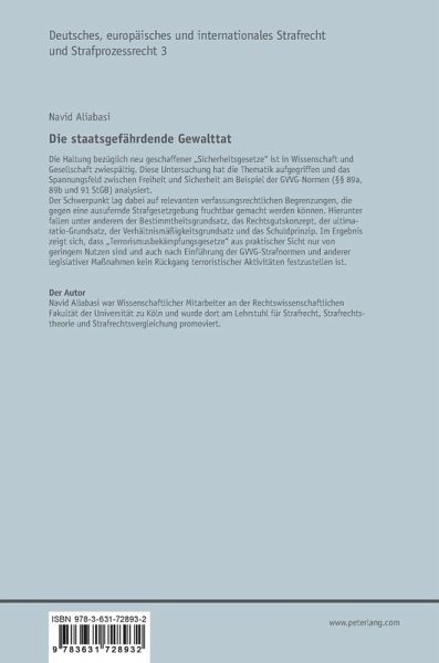 Die Haltung bezüglich neu geschaffener «Sicherheitsgesetze» ist in Wissenschaft und Gesellschaft zwiespältig. Diese Untersuchung hat die Thematik aufgegriffen und das Spannungsfeld zwischen Freiheit und Sicherheit am Beispiel der GVVG-Normen (§§ 89a, 89b und 91 StGB) analysiert.